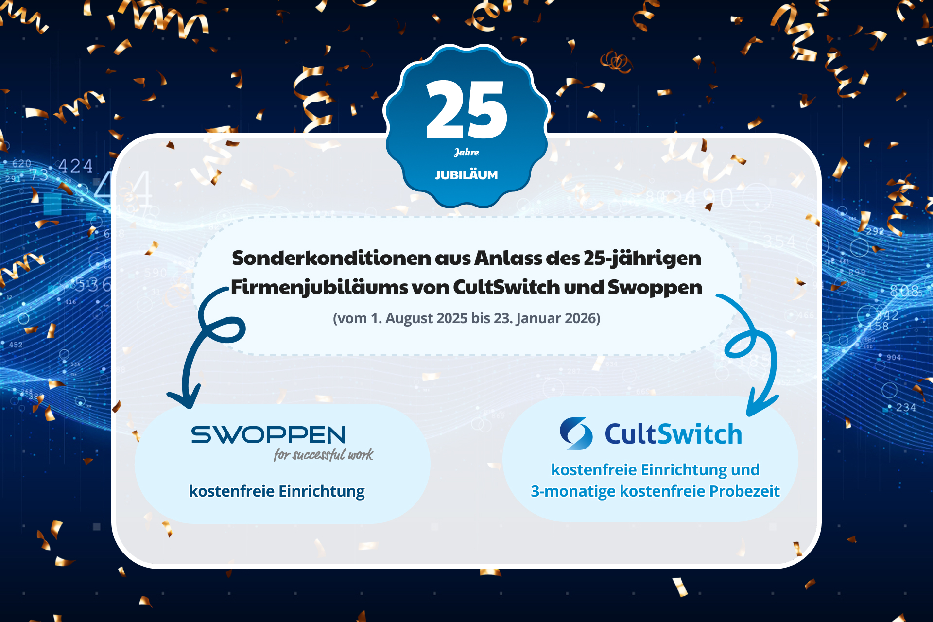 Zum gemeinsamen Jubiläum bedanken sich Swoppen und CultSwitch mit einem exklusiven Angebot für Neukunden: